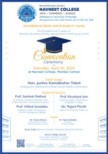 It is with immense joy and pride that we extend to you a warm and cordial invitation to the Convocation Ceremony hosted by Navneet College, under the auspices of the President and Trustees of Navneet Education Society. This esteemed event will take place on Saturday, April 20, 2024, at Navneet College.